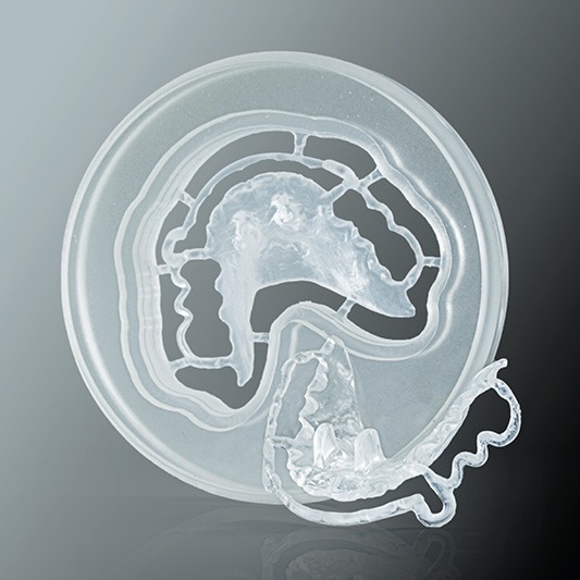 Fräsrohling eignet sich für hochästhetische, gleichzeitig thermoaktive kieferothopädische Apparaturen mit Memoryeffekt für ein Mehr an Tragekomfort.